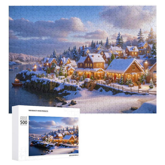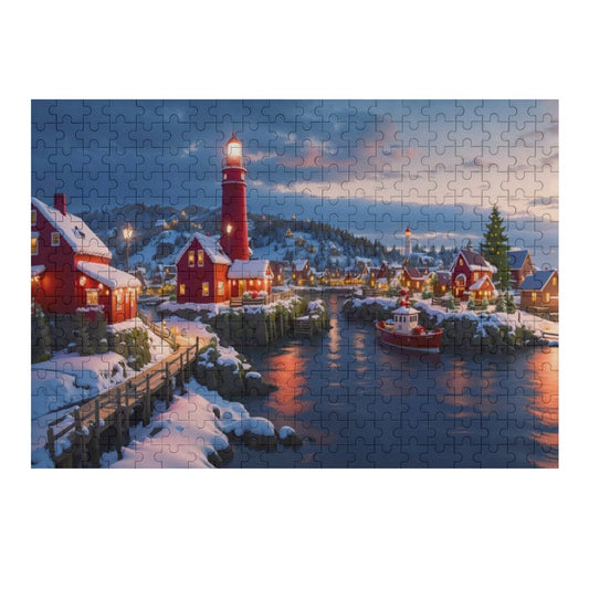 Christmas at the Sea Cove Wooden Picture Jigsaw Puzzle, Art by Sals