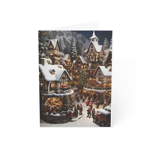German Christmas Village Greeting Cards with Envelopes- Blank Inside