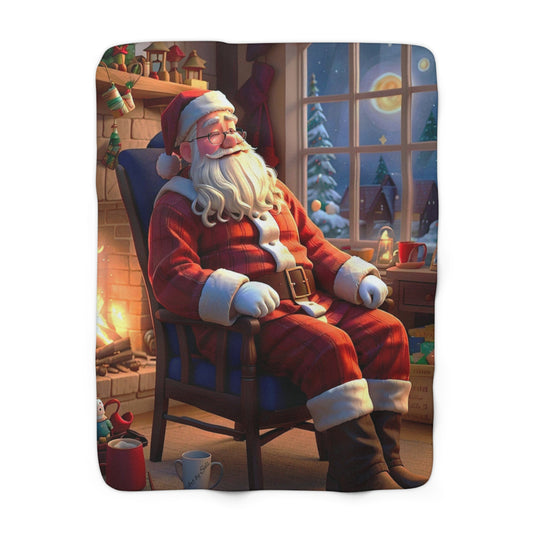 Santa's Fireside Snooze by Art by Sals Sherpa Fleece Blanket