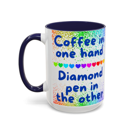 Diamond Painting "Coffee in one hand Diamond pen in the other" Accent Coffee Mug 15oz