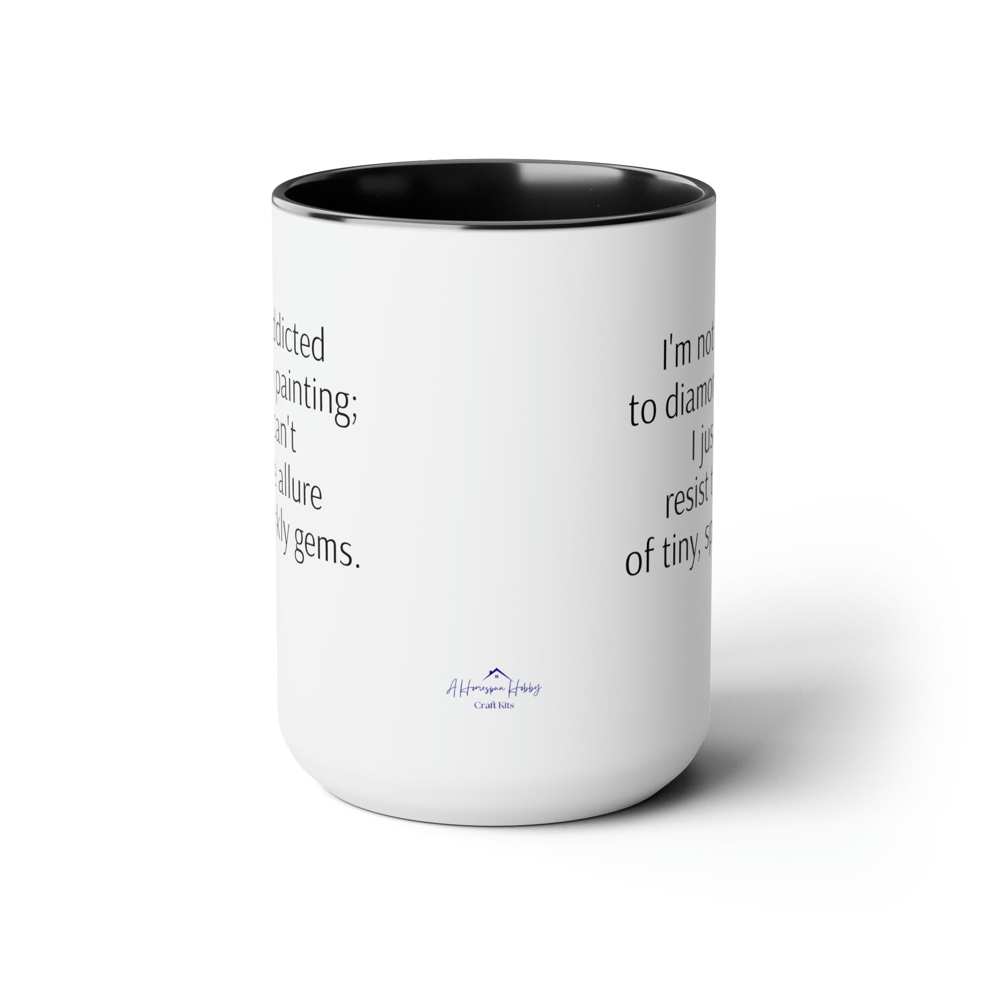 I'm Not Addicted to Diamond Painting; I Just Can't Resist the Allure of Tiny, Sparkly Gems - Two-Tone Coffee Mugs, 15oz