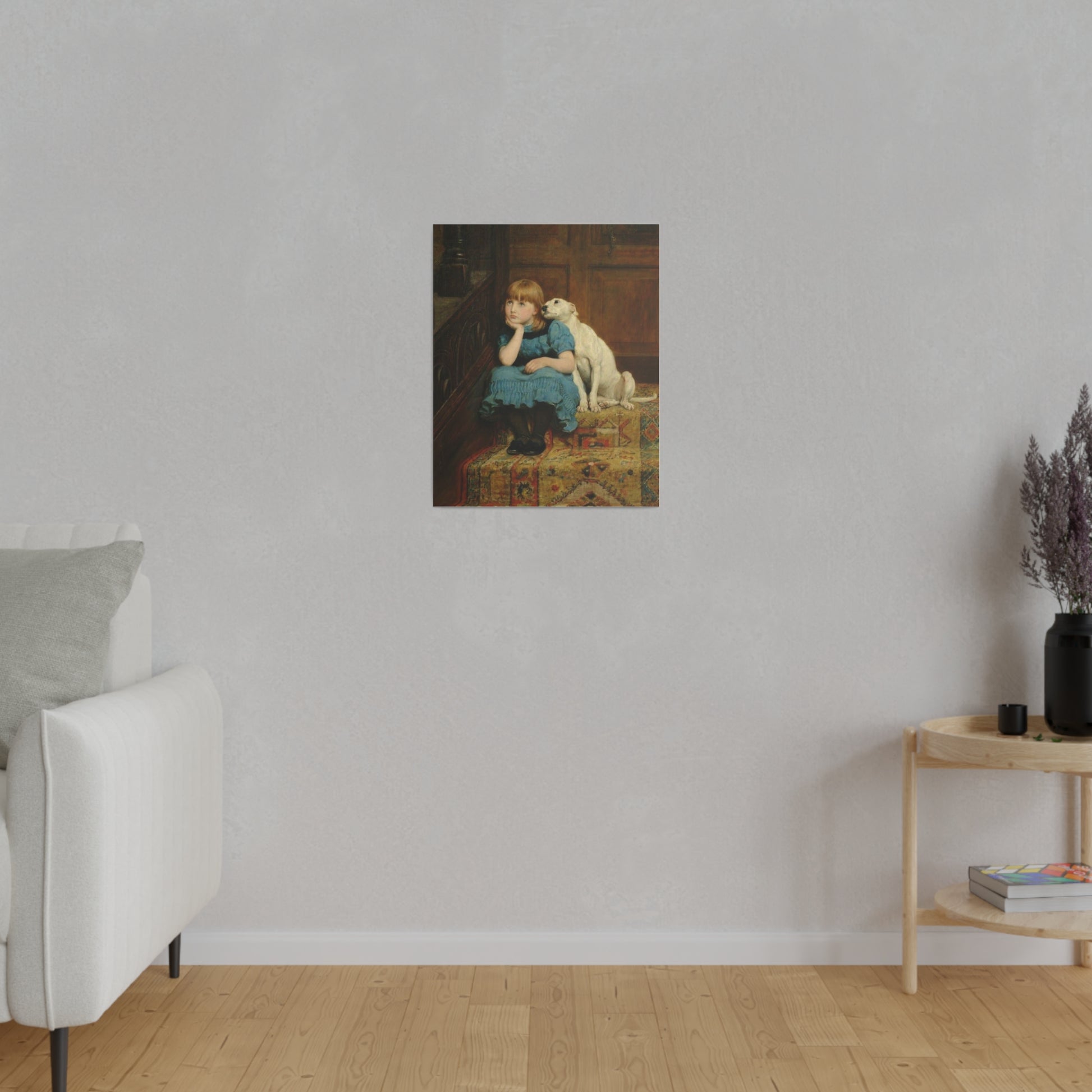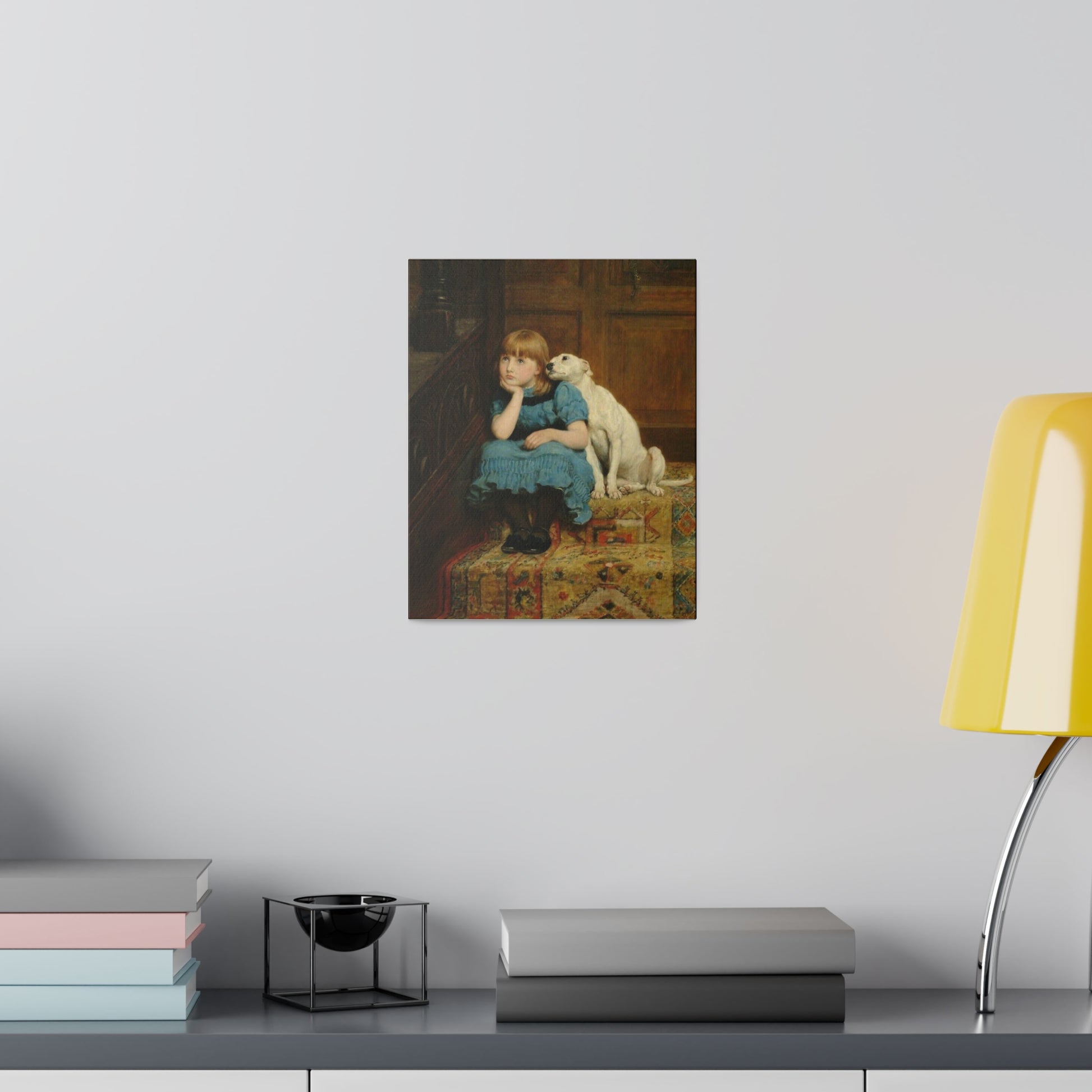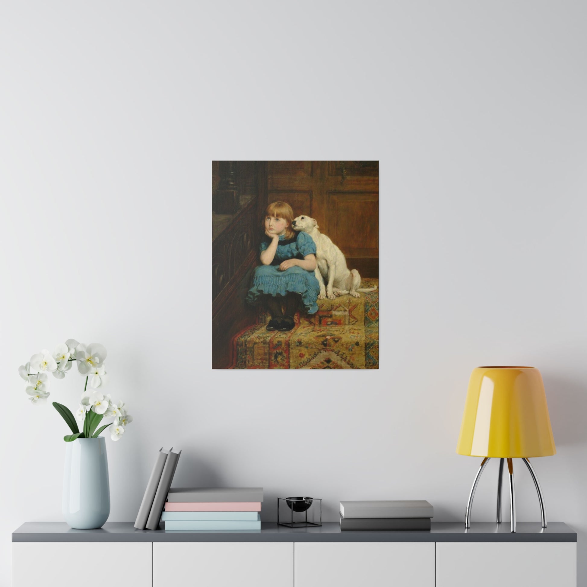 Riviere garnered widespread acclaim from the Victorian audience due to his entertaining and often humorous depictions of animals. One of his most beloved works, 'Sympathy,' portrayed a young girl relegated to the stairs in disgrace, finding solace in the comforting presence of her dog. Although the initial rendition debuted at the Royal Academy in 1878, the displayed image is a preparatory study Riviere crafted for a subsequent version.